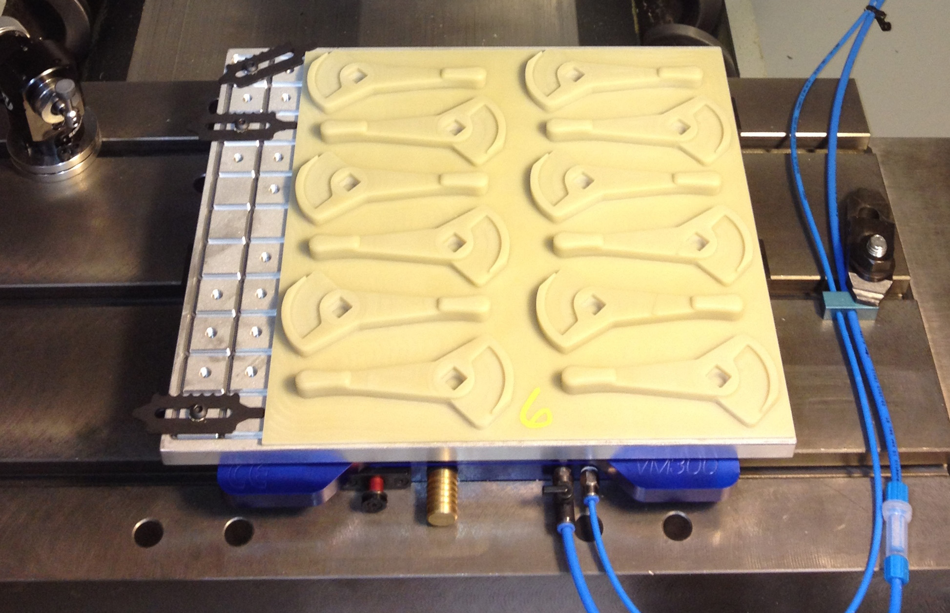 In a relatively short amount of time the VM300 has established itself as the vacuum system to which all others are measured. Capabilities include traditional vacuum applications using our standard grid plate and custom vacuum applications (ie: machining blank pallet to suit specific part geometry) and the ability to perform as a rock solid pallet changer.